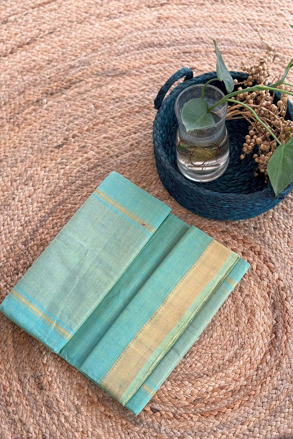 Elevate your wardrobe with this elegant handwoven saree in a serene pastel green shade. Crafted from fine natural fibers, it features a delicate golden-beige border that adds a subtle touch of sophistication. The minimalistic design, paired with the soft, breathable fabric, makes it perfect for both casual and semi-formal occasions. Its lightweight texture ensures effortless draping and comfortable wear throughout the day. Ideal for those who appreciate understated grace and timeless charm.
